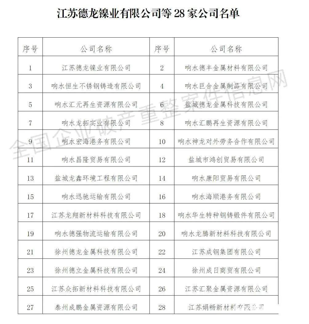 28家列入重整名单的德龙系公司涵盖了响水、徐州、戴南三地的公司,而溧阳项目的三家公司则不在名单之列。